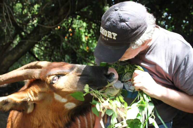 Me and one of the repatriateed Mountain Bongos at the Mount Kenya Rescue and Rehabilitation centre