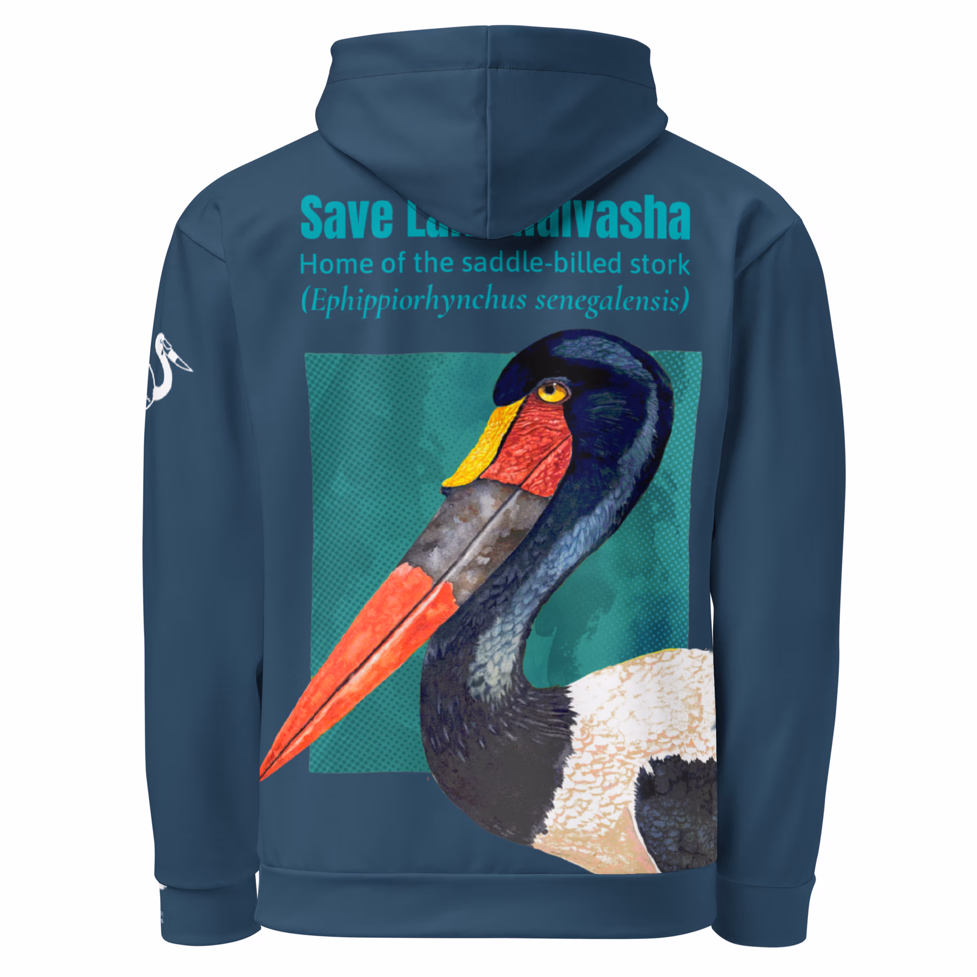 25% of all proceeds from saddle-billed stork art and merchandise is donated to Kenya Bird of Prey Trust, to help with their ongoing community projects to clean up Lake Naivasha, which is the home of their raptor sanctuary and to monitor its incredibly rich and diverse bird life, including raptors, but also positively affecting populations of water fowl, such as great crested grebe, kingfishers, cormorants, several endangered heron species and of course, the occasional and ever characterful saddle-billed storks (the harlequins of storks).